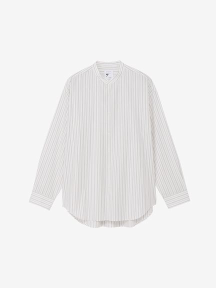 汗のニオイを消臭する糸を用いてドライタッチの生地に仕上げられた、清涼感のあるラミー混のスタンドカラーシャツ。素材の機能に加え、シャツとしての品質も追求。縫製は熊本県人吉市に本社工場を構えるシャツファクトリーでしており、形崩れしにくい襟の設計にするなどひとつひとつ丁寧に仕立てている。シンプルなデザインでありながら個性が光るビッグシルエットで、タウンユースや在宅ワークにも使いやすい。梅雨どきや夏場にさらりと羽織るのにも適したアイテム。