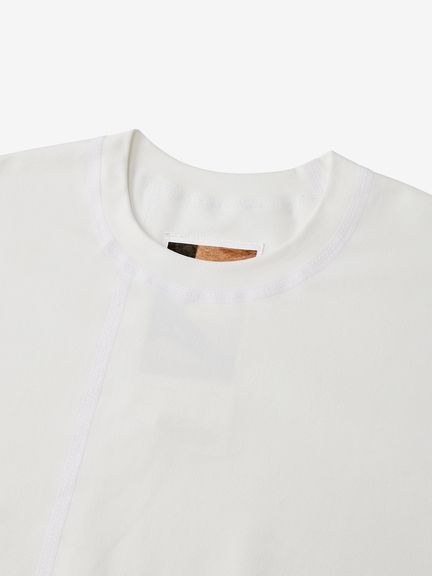 そのため一般的なTシャツにはない縫い目が存在するが、超音波ミシン縫製、強力なテープ接着により縫い代のない肌あたりの良さと強度を両立。