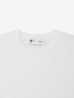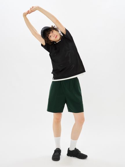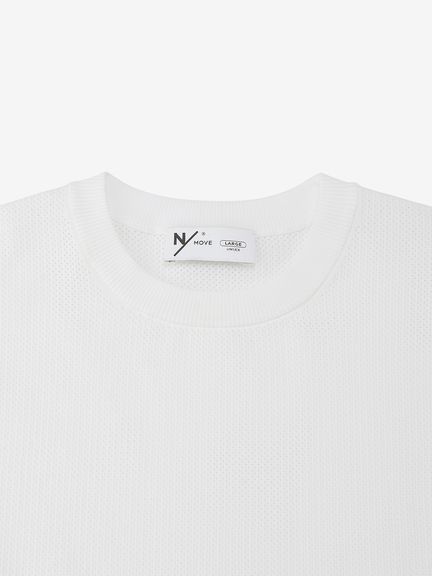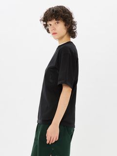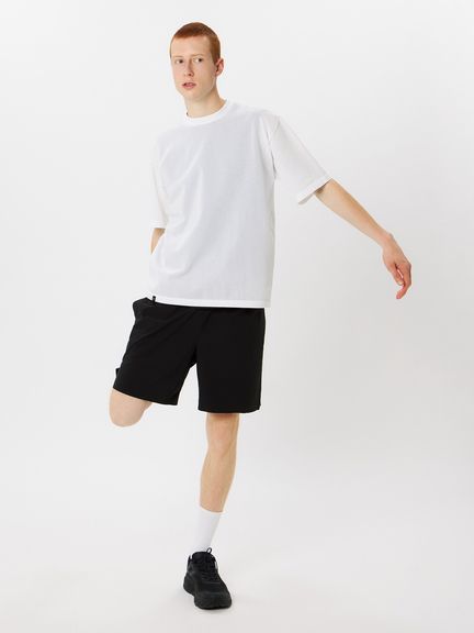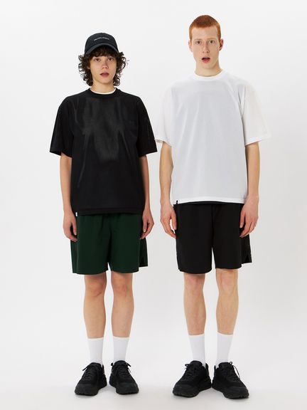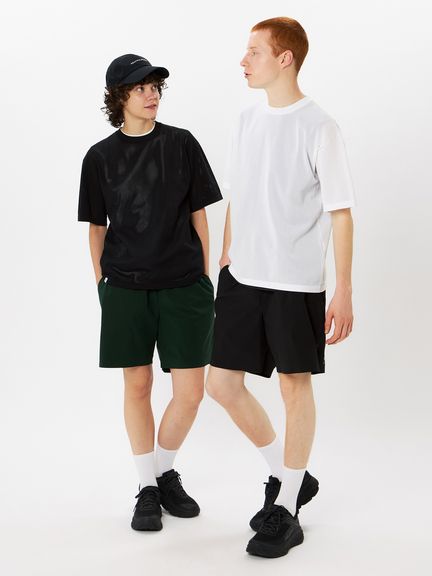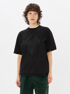 上半身の動きを妨げにくい、ゆとりのあるボックスシルエット。インナーとの重ね着で透け感を生かした着こなしも楽しめます。トレーニングやワークアウトなどのアクティブシーンからタウンユースまで、日常のさまざまな場面に対応します。