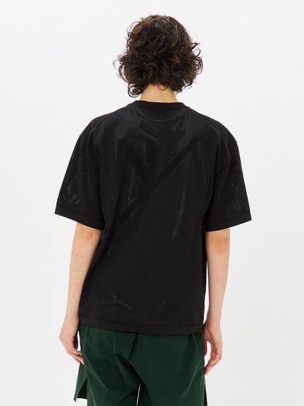 通気性を考慮したメッシュ構造のポリエステルニットトップス。