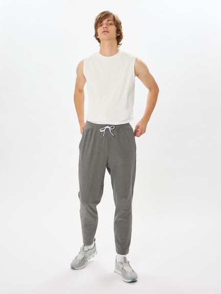 ウエスト周りはゆとりを持たせながらも、脚がすっきりと見える細めのテーパードシルエット。やわらかな着心地でアクティブシーンはもちろん、タウンユースやリラックスタイムにも快適なアイテムです。
