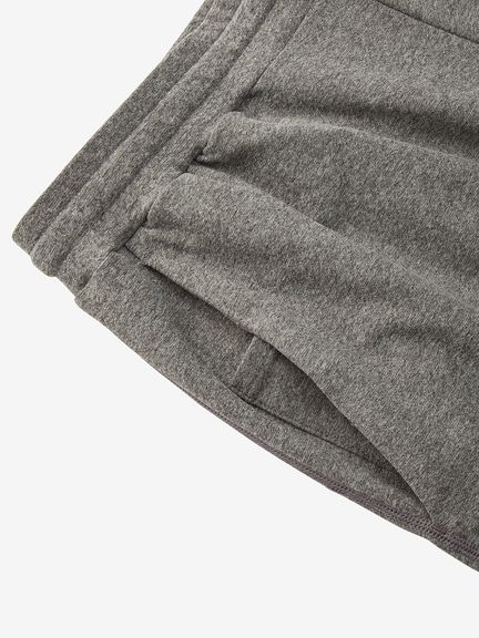 もちっとして肌触りのよいやわらかなジャージ素材を使用。ストレッチ性があり、身体の動きにスムーズに追従します。生地にポリジン・ステイフレッシュ加工(抗菌防臭)を施し、細菌の繁殖を抑えてニオイの発生を軽減します。両サイドにポケットがあり、右ポケット内にはスマートフォンなどが収納できるガジェットポケットを配置。