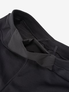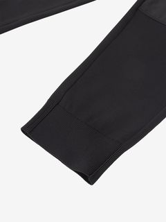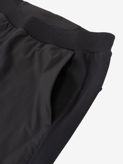 前身頃の膝から上は中わた入りの布帛を使用。軽量メカニカルストレッチ素材で、身体の動きにスムーズに追従します。中わたには保温性と伸縮性のあるPRIMALOFT Active Ventを使用。後身頃と膝から下は、汗をかいても繊維の表面を弱酸性に保つ加工を施したポリエステルの糸をハイゲージで編み立てた、軽量のニット生地。ウエストは締め付け感の少ないリブ仕様。ウエスト背面にはスマートフォンなどが収納できるガジェットポケットを配置して収納性を高めています。熱がこもりやすい膝裏にはアイレットを配置し、衣服内のムレを軽減します。