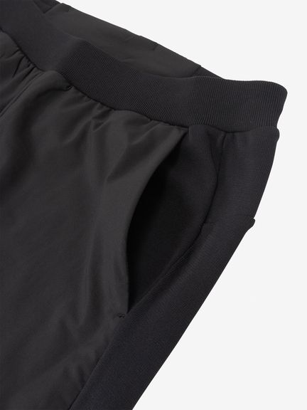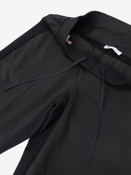 マットな布帛とニットの組み合わせでウォームアップ時の寒さを軽減。デイリーユースにもなじむパンツです。