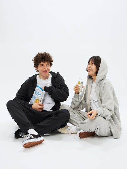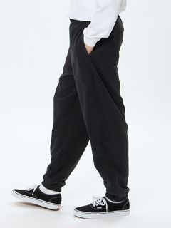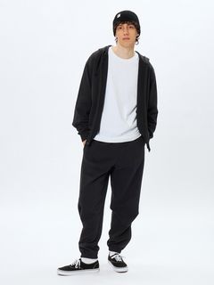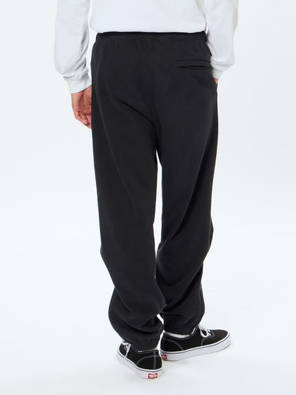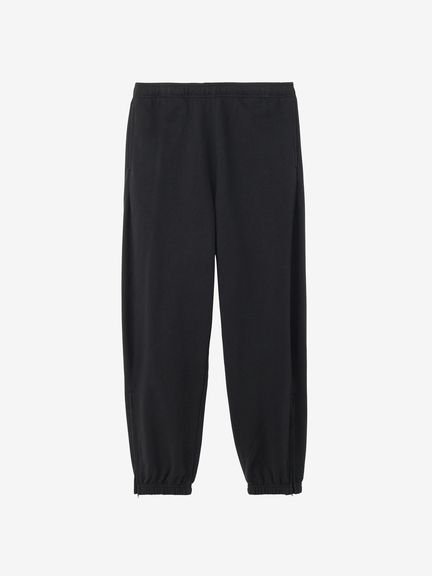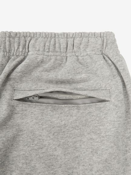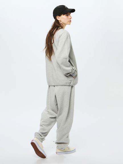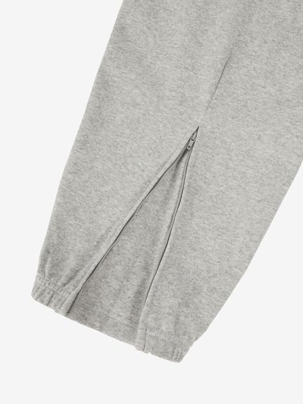 クラシックな裏パイルのスウェット生地はほどよい厚みで、1年を通じて着用が可能です。左右にポケットがあり、右ポケット甲側にはファスナー付きのセキュリティポケットを配置しています。ウエストは調節のしやすいスピンドル仕様。裾はゴム仕様。裾にファスナーを配置し、開閉することで異なったシルエットを楽しめます。