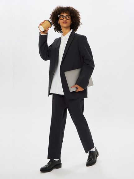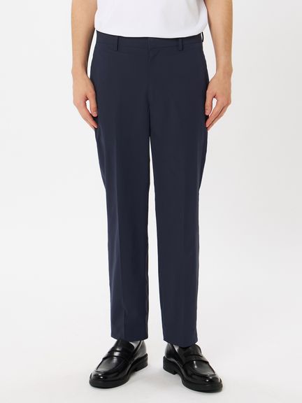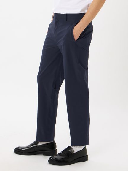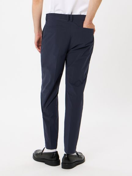 「よく働きよく遊ぶ」そんなライフスタイルを体現するテーラードスラックス。はっ水性、ストレッチ性に優れた高機能でかつマットな見た目のポリエステル素材を採用。縫い目のないフラットな仕上がりを可能とする圧着技術などにより、スラックスとしての美しさを追求している。裏地のない一重仕立てにすることで、軽量かつ快適な着心地を実現。ご自宅でのお手入れが可能。仕事や遊び、オンとオフ、私たちの生活にある様々な境界線を越え、そして私たちのマインドシフトをシームレスに繋いで行く一枚。