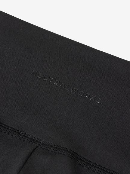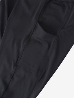 ハイウエストでお腹まわりをしっかり包み込み、適度なストレッチ性のある生地は締め付け感が少なく、快適な着心地です。背面ウエストにメッシュ生地を内蔵し、通気性を保ちつつサポート感を向上しています。生地にポリジン・ステイフレッシュ加工(抗菌防臭)を施し、繊維上の細菌の繁殖を抑えてニオイの発生を軽減します。スマートフォンなどの小物を収納できるポケットを両サイドに配置。小物を収納していても脚の動きを妨げにくい設計です。