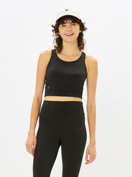 女性のアクティビティを快適に演出する、やさしくなめらかな風合いで身体を包み込むブラカップ付きトップス。