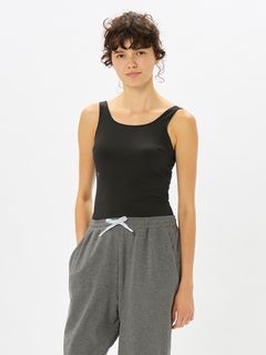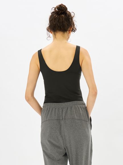 女性のアクティビティを快適に演出する、やさしくなめらかな風合いで身体を包み込むブラカップ付きタンクトップ。
