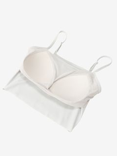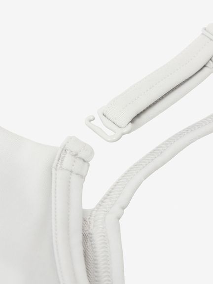 ポリジン・ステイフレッシュ加工(抗菌防臭)を施した、なめらかなストレッチ素材を使用。アンダーゴムをなくすことで締め付け感を抑え、やさしい着心地を実現しています。裾はシームレスであるため、縫製によるごろつき感を軽減。カップは着用時や洗濯でのずれを軽減する縫い込み仕様です。肩ストラップは後ろ側を付け替えることで、ストレートとバッククロスの2WAYでの使用が可能。
