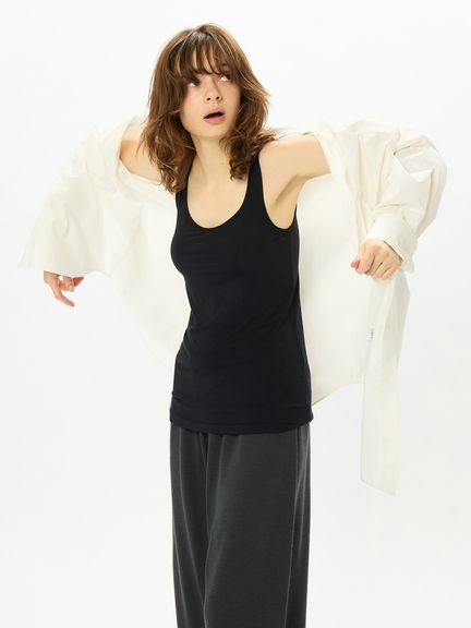 繊細に作られた肩紐や衿ぐり、美しく見えるシルエットで、デイリーからリラックスシーンまで気負わず自然に、心地よく着用できるアイテムです。