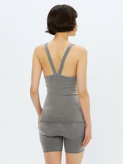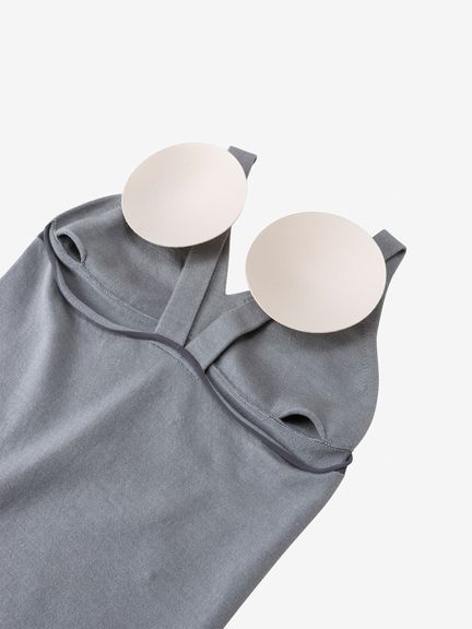 パッド付きのナイトブラはお腹まで覆うことのできる長さの設計。秋から冬のナイトウエアの定番として活用したいアイテムです。