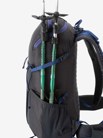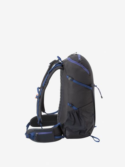 日帰りから長期バックパッキングまで、多目的に使用できる軽量シングルコンパートメントパックのシリーズです。ヘスパー30は、本体重量わずか730g(S2サイズ)。軽量性を誇りながら、30Lの容量を有し、必要な厳選した装備品を収納できるテクニカルパックとして完成しています。軽量性を追求した背面通気パネル「ヘリウムエアー」を搭載し、フレームレスにすることでアクティブな動き対応します。シンプルなシングルコンパートメントで構成し、ジッパー開閉による内部アクセスのパネルローディングを採用。フロントとサイドには、スピーディな荷物の出し入れを考慮したストレッチスタッシュポケットを配備。ウエストハーネスは固定式で、安定した背負い心地を実現しています。