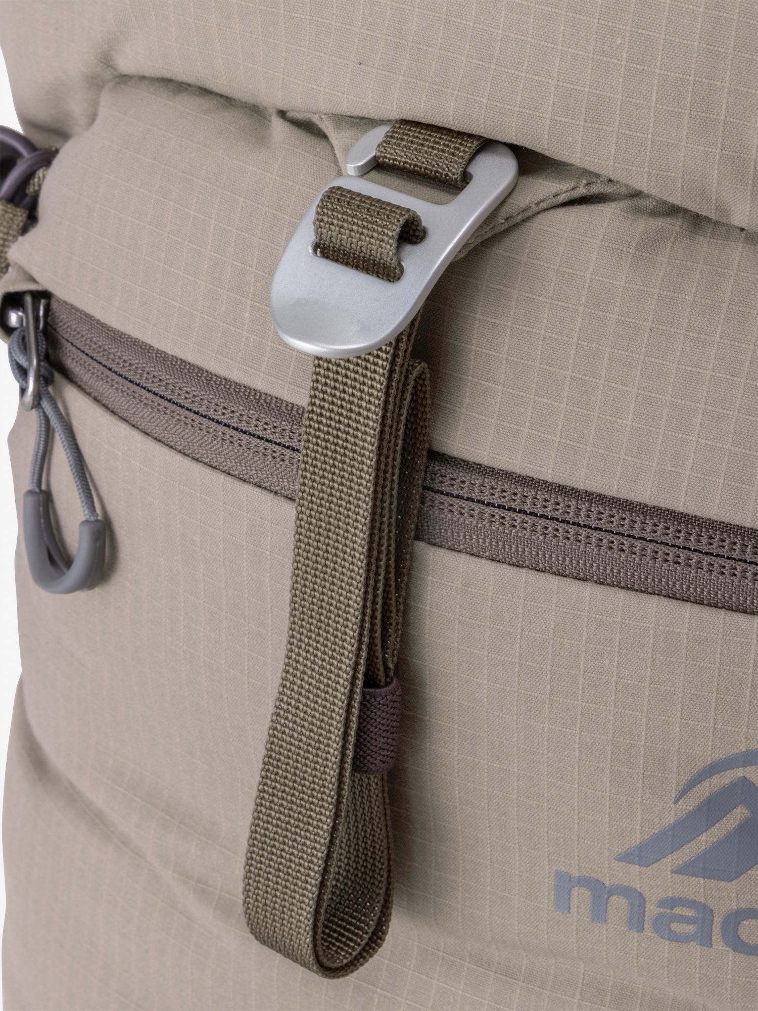 本体はロールトップとジッパーの2ウェイオープニングで、本体内部へのスムーズなアクセスと容量調整が容易です。ウエストベルトは、スタイルに合わせて背面のスリットに収納できます。小物の収納に便利なフロントのファスナーポケット、トレッキングポールなど長物の収納に対応するサイドメッシュポケット、ほとんどの500mlボトルを収納できるショルダーハーネスのメッシュポケットなど充実の収納力。山小屋泊や荷物の多い日帰り登山などに活躍する中型バックパックです。