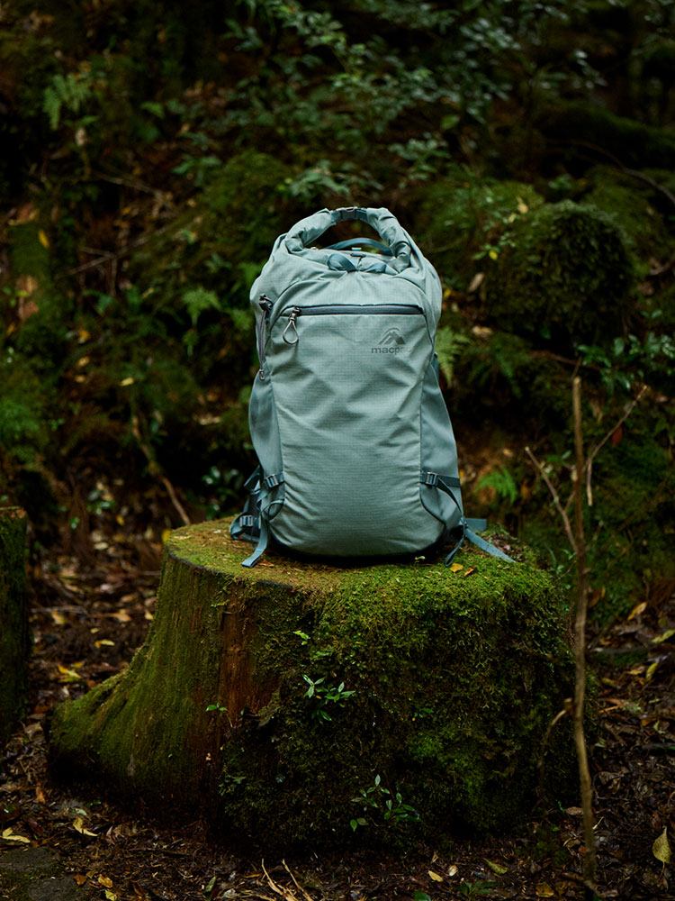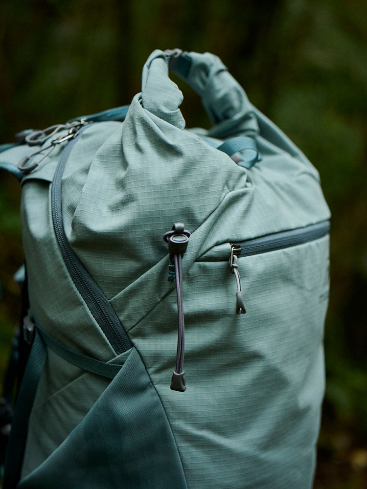 ロールトップの開口部を採用した容量35Lのバックパック。