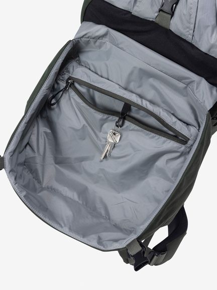 - ディバイダーの使用で2気室、1気室対応可能/フロントに大型ジッパーポケット/ハイドレーションバッグ対応/トップリッドに収納ポケット/段階で調整可能なチェストストラップ/ストレッチボトルポケット/ポールループ付き