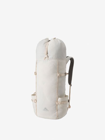 - シンプルな一気室のバックパック/ドローコード開閉式の開口部/スカート部で容量調整が可能 最小30L 最大40L/両サイドのポケット/両サイドのデイジーチェーン/取り外し可能なパーツ類/荷物の圧縮を可能にするトップのクロージャーストラップ 1本/両サイドに2本のコンプレッションストラップ。合計4本/チェストストラップ1本/ウエストウェービングベルト1本/内部の背面パッド