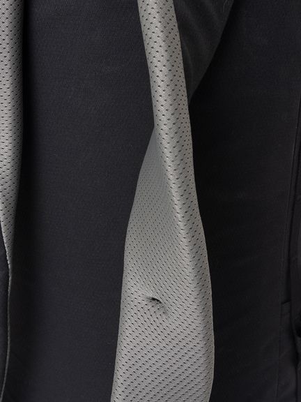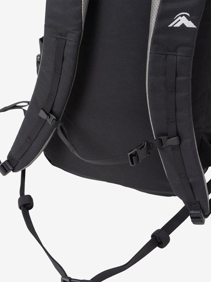 トップクロージャーストラップ、両サイド2本のコンプレッションストラップ(計4本)、チェストストラップ、ウエストウェービングベルト、内部の背面パッドは、すべて着脱が可能。不要なパーツを外した最小構成では、約540gまで軽量化することができます。