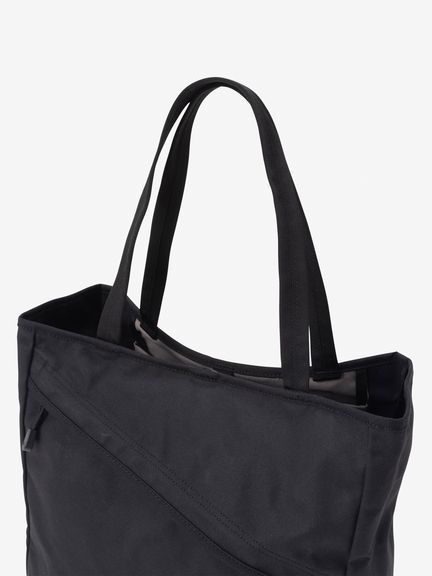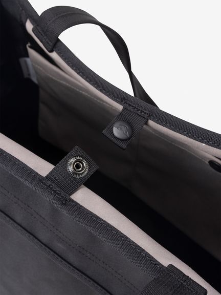 高密度で織り上げた素材は、長年の使用にも耐える強度を持ち、使うたびに増してゆく風合いを楽しむことができます。開口部はスナップボタン、内部に小物収納用のポケット付き。底部分は1000Dのナイロンで補強したマチを設けています。肩にかけて持ち運びやすい長さに仕上げています。