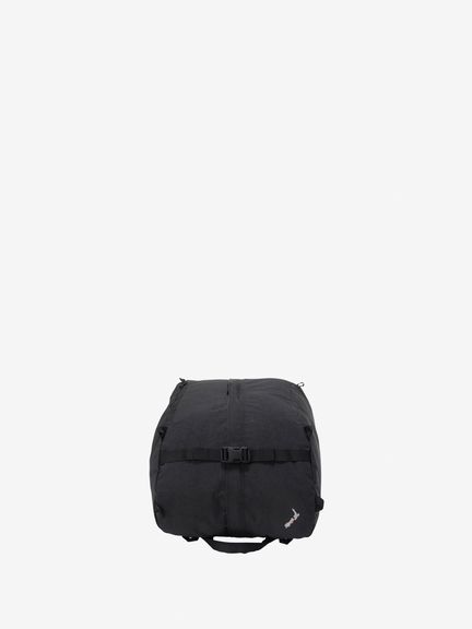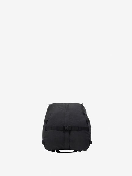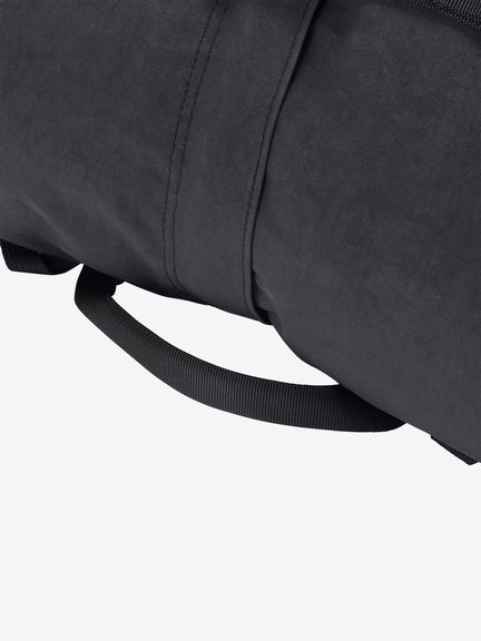 素材には、耐久性と耐水性を備えたリサイクルオックスフォードナイロンを採用しています。メインコンパートメントは、スーツケースのようにフラットに開くクラムシェル型の開閉式で、荷物をスムーズに収納できます。両サイドにはグラブハンドルを備え、持ち運びや荷上げに便利。小物の収納に便利なフロントポケットは、本体を収納できるパッカブル機能をもち、コンパクトに携行することもできます。