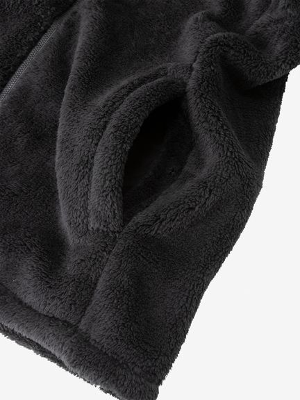 ふっくらとしたフリースの毛足が、やわらかな着心地と高い保温性を実現。やや高めの襟が首まわりからの体温の放出を抑えます。左胸に施されたロゴがデザインのアクセントです。