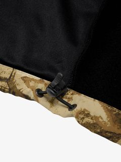 ポリエステルのマイクロフリース素材は、軽くて厚みがあり柔らかな着心地。デッドエアを効果的にため込み、衣服内を適温に保つうえ、裾のドローコードでさらに気密性を高めることができます。パックに干渉する肩はナイロン生地で補強。専用ファスナーでアウターを連結できるジップインジップシステム対応モデルです。