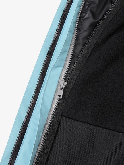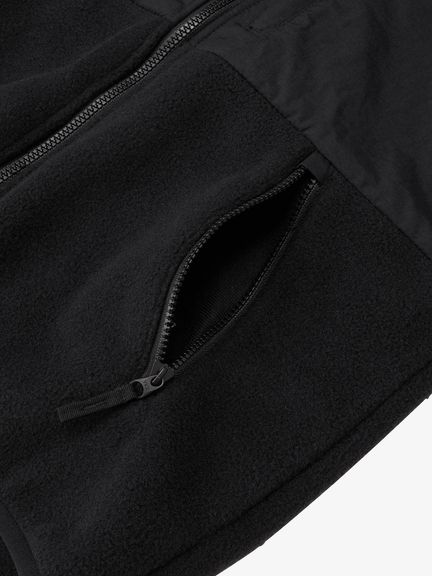 ポリエステルのマイクロフリース素材は、軽くて厚みがあり柔らかな着心地。擦れやすい肩周りと肘部分は、リサイクルナイロン素材で補強しています。フロントファスナーはZIP IN ZIPシステムに対応したアウターと連結できます。