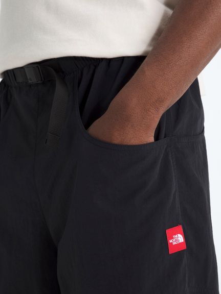 THE NORTH FACEのブランドアイコンロゴである"レッドボックス"をあしらったシリーズ。フィット感の調節がしやすいウェビングベルト仕様のパンツ。