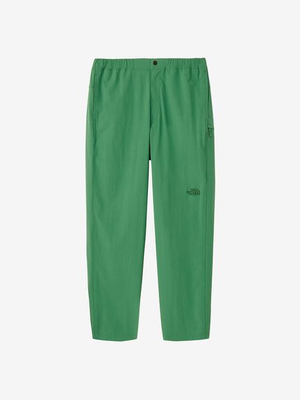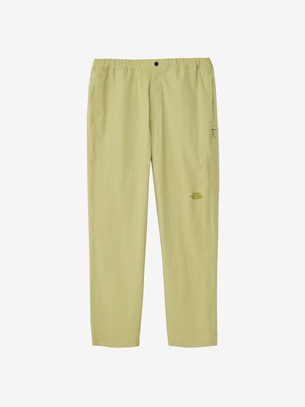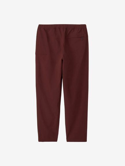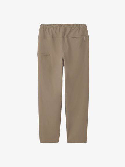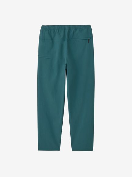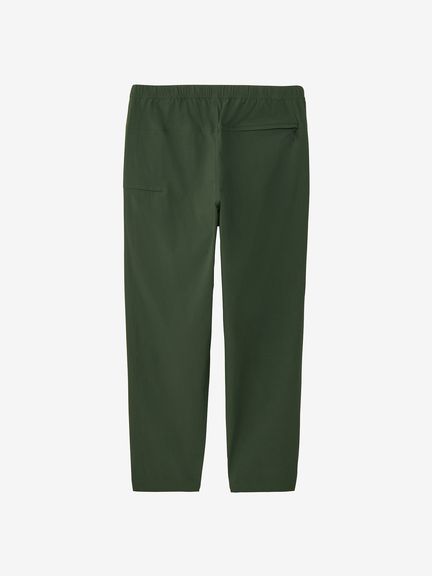 一部リサイクルナイロンを使用したリップストップ生地はストレッチ性と適度なハリ感があり、はっ水加工を施しているため多少の雨は弾きます。脚さばきが快適なテーパードシルエットで、左サイドには地図が入るサイズの縦長のポケットを配置。ウエストはサイズ調節のしやすいスピンドル仕様。UVケア(UPF15-30、紫外線カット率85%以上)機能付き。