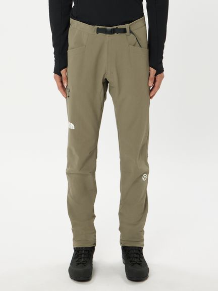 - クライミング時の足さばきに干渉しにくいタイトシルエット/右大腿部にはハーネスに干渉しないポケットを配置/ハーネス時も用足ししやすい逆開フロントファスナー