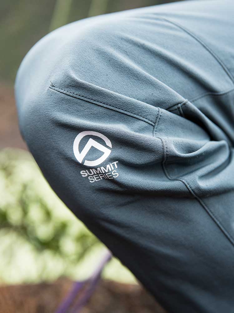 - クライミング時の足さばきに干渉しにくいタイトシルエット/右大腿部にはハーネスに干渉しないポケットを配置/ ハーネス時も用足ししやすい逆開フロントファスナー