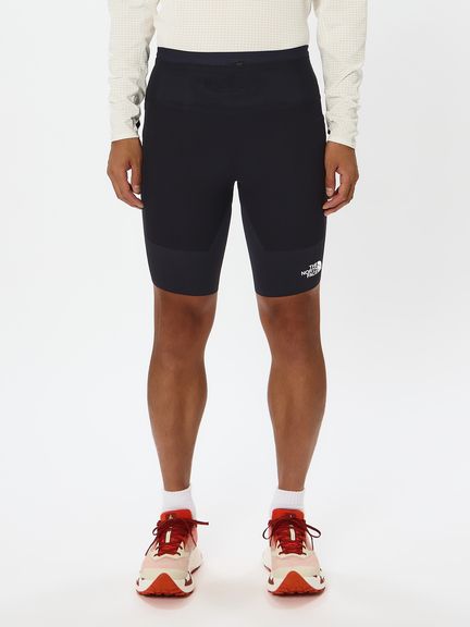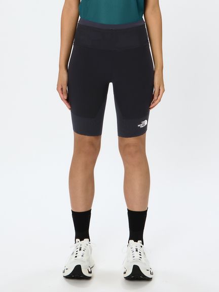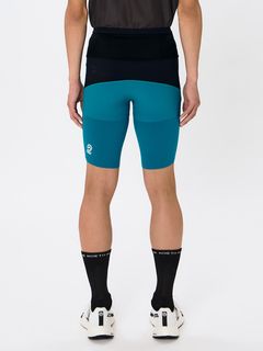 メイン素材にはストレッチ性が高い軽量なニット生地を採用し、飛び出した枝などがあたりやすい大腿部の前後は防護性と防風性を備えながら高いストレッチ性をもつ布帛素材を配置。フィット感と骨盤の安定性を高めて走りをサポートするため、背面のウエストまわりはハリ感のある生地で切り替えしています。裾の内側は、ずり上がりを軽減する滑り止め付きです。