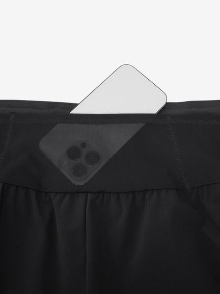 - はっ水加工を施した身生地/高ストレッチ素材のウエスト切替による高いフィット性/ウエストに6つのメッシュポケット/ウエストスピンドル表裏両出仕様/リフレクターロゴ