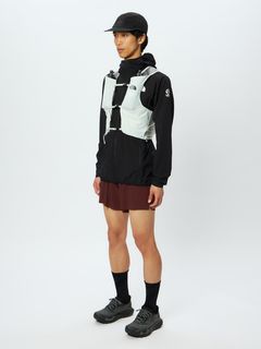 雨や霧などの影響を受けにくいはっ水加工を施した軽量ナイロン素材を採用。裾口は縫い目のないフリーカット仕様で、肌あたりが少なく軽快に脚上げできます。ウエストには高いストレッチ素材を使用した6つのポケットを配備。幅広い面で体にフィットさせて収納できるため、ジェルやエナジーバーなどの行動食や、スマートフォンなどの小物の揺れを抑えながら携行できます。