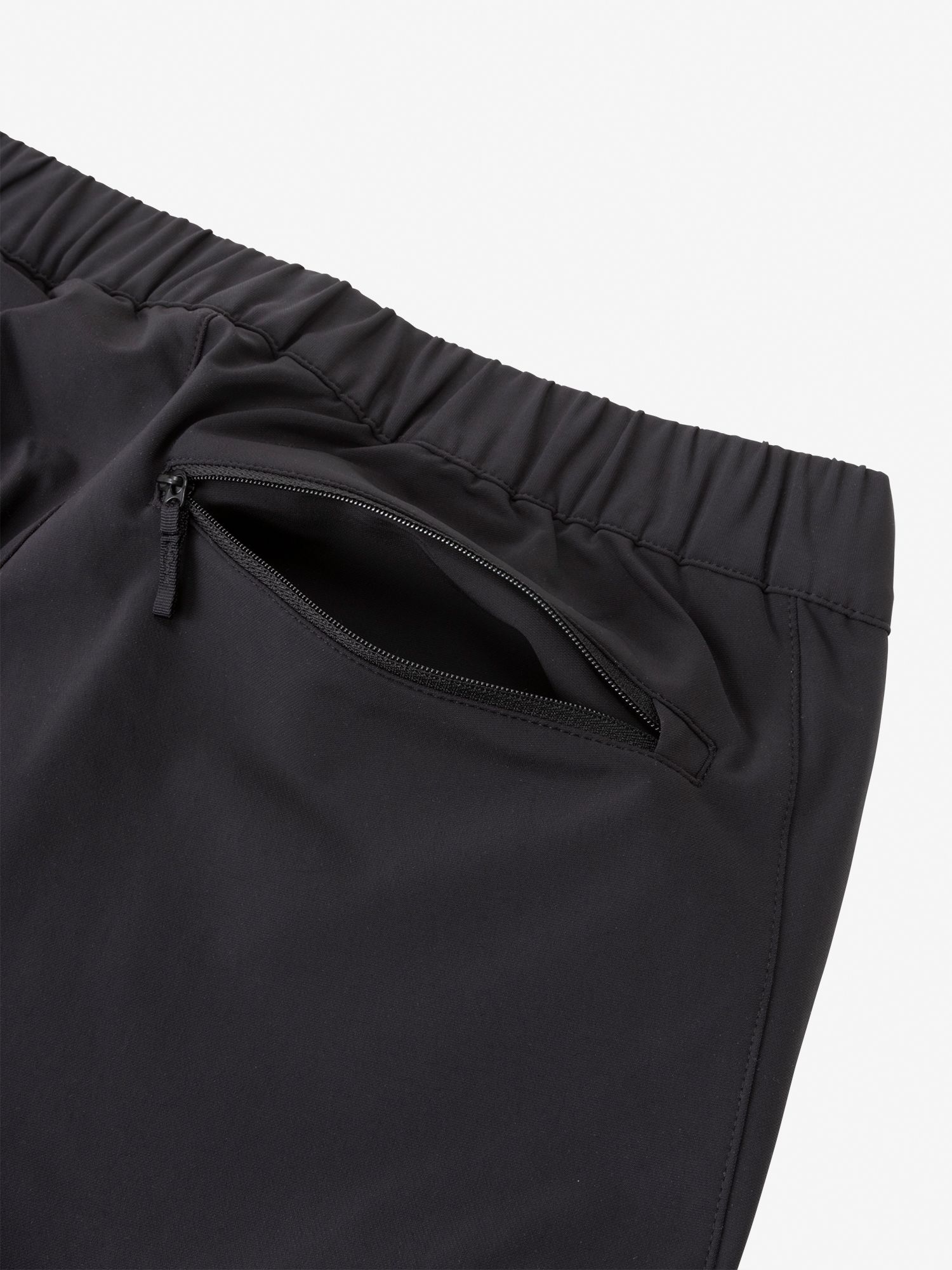 ポリウレタンとリサイクルナイロンを一部使用した混紡生地は、高いストレッチ性を持ち、ニットのような伸縮性と着心地のよさが特徴です。テーパードシルエットでありながら、立体的なパターンで脚上げがスムーズにできます。ハーネス使用を想定し、ウエストにバックルを設けないすっきりした腰周り。フロントのファスナーはダブルスライダー仕様です。