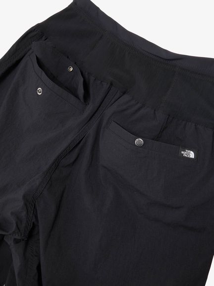 8分丈でゆとりのある、ワイドテーパードシルエット。自転車走行時の脚の運動を考慮し、膝にダーツを入れています。THE NORTH FACEならではの機能合理性を持ちつつ、都市生活に対応するデザイン性を高めたアイテムです。UVプロテクト(UPF50+、紫外線カット率95%以上)機能付き。