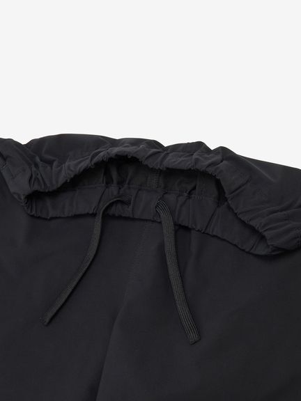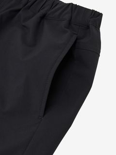 ストレッチ性のある生地で、裾幅をやや広くして可動域を広げています。表側は、はっ水加工を施し、裏側は肌離れのよい二重織の生地。