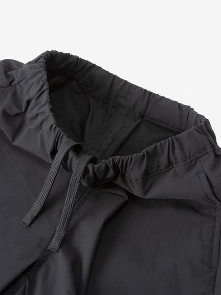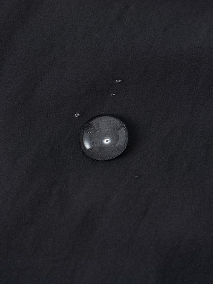 リサイクルナイロンとポリウレタンを使用したストレッチ性のある生地で、裾幅をやや広くして可動域を広げています。表側は、はっ水加工を施し、裏側は肌離れのよい二重織の生地。