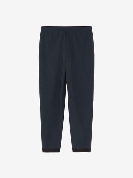 ウエスト回りはスピンドル仕様で、フィット感を調整可能。裾のかかと側が平ゴム仕様で、動きやすく、靴をスムーズに脱ぎ履きできます。テーパードシルエットのシンプルなデザインで、さまざまなスポーツシーンから日常のカジュアルシーンまで着回しが効くアイテムです。
