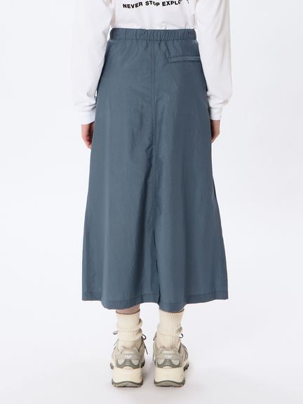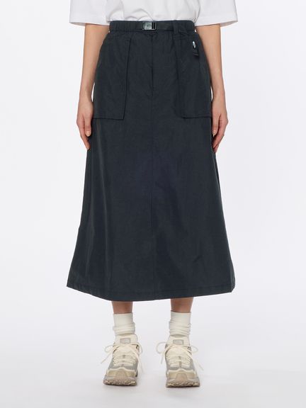 はっ水加工を施した軽量ナイロン素材を使用した、マルチユースのロングスカート