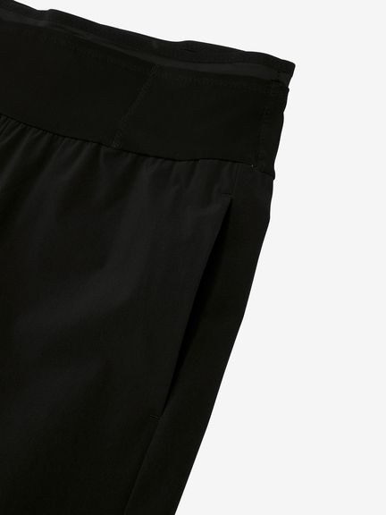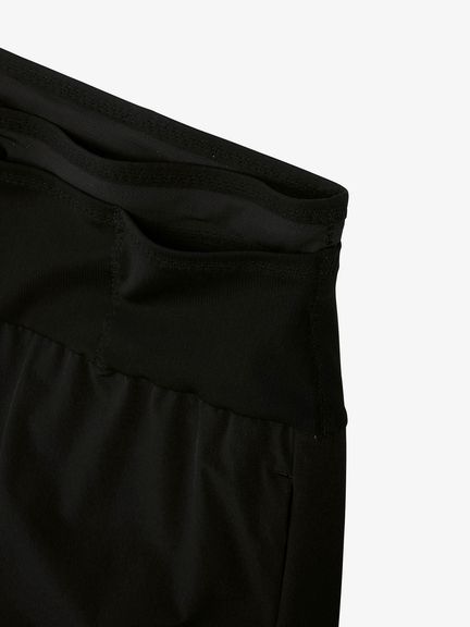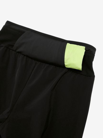 - 高ストレッチ素材のウエスト切替による高いフィット性/はっ水加工を施した身生地/ウエストに5つのメッシュポケット/ウエスト背面アウター収納ベルト/左右脇ポケット/ウエストスピンドル表裏両出し仕様/リフレクターロゴ