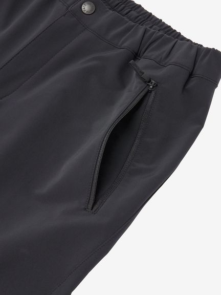 リサイクルナイロンとポリウレタンの混紡生地は高いストレッチ性を持ち、ニットのような伸縮性と着心地のよさが特長です。テーパードシルエットでありながら、立体的なパターンで脚上げがスムーズにできます。ハーネス使用を想定し、バックルを設けないすっきりとした腰周り。ウィメンズモデルは、ハーネスと干渉しないよう、ポケットのファスナーが下向きに閉まる仕様です。