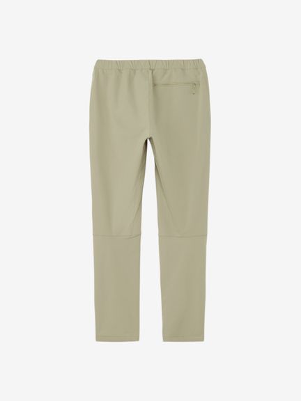 リサイクルナイロンとポリウレタンの混紡生地は高いストレッチ性を持ち、ニットのような伸縮性と着心地のよさが特長です。テーパードシルエットでありながら、立体的なパターンで脚上げがスムーズにできます。ハーネス使用を想定し、バックルを設けないすっきりとした腰周り。ウィメンズモデルは、ハーネスと干渉しないよう、ポケットのファスナーが下向きに閉まる仕様です。