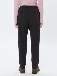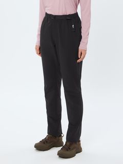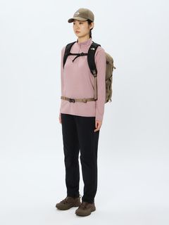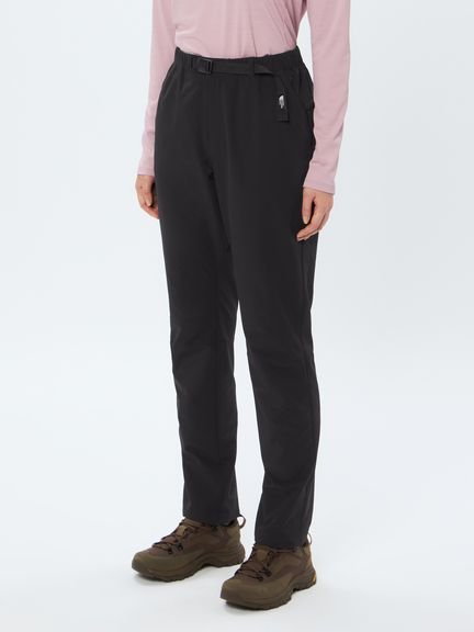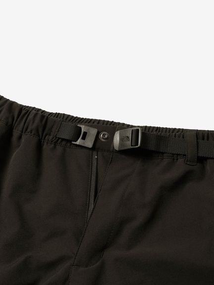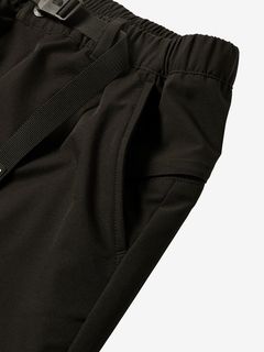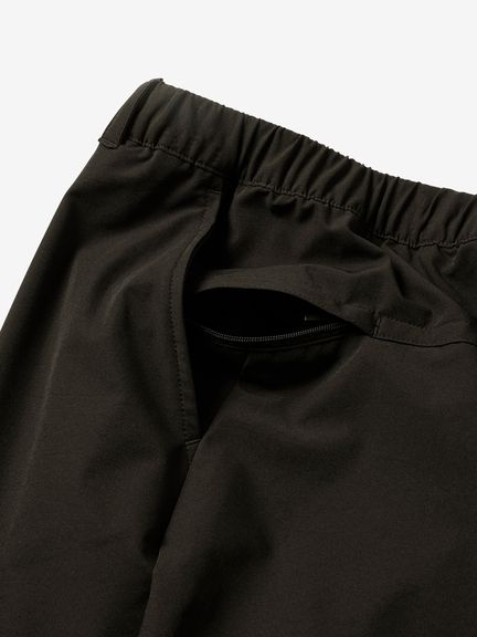 はっ水加工を施した表地は、ポリエステル100%ながらストレッチ性が高く、ダイナミックな脚の動きにスムーズに追従します。ウエストベルトに沿った位置にファスナー付きポケットを配置することで、収納したアイテムが動きにくい仕様です。
