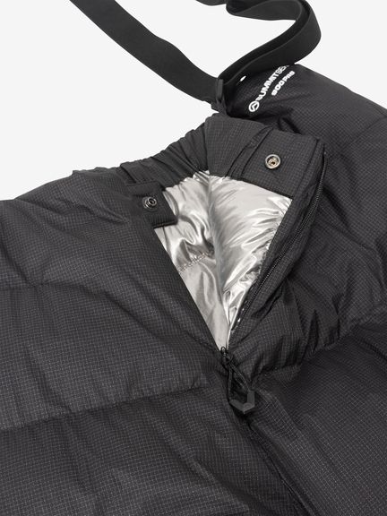 メイン素材には、高い引き裂き強度を持つ超高強度スペクトラリップストップ生地を採用。厳冬期遠征中やビレイ時の保温パンツとしてのハードな使い方に対応した素材を使用し、封入したダウンの偏りによるコールドスポットの発生を軽減するクラウドダウン構造で仕上げています。