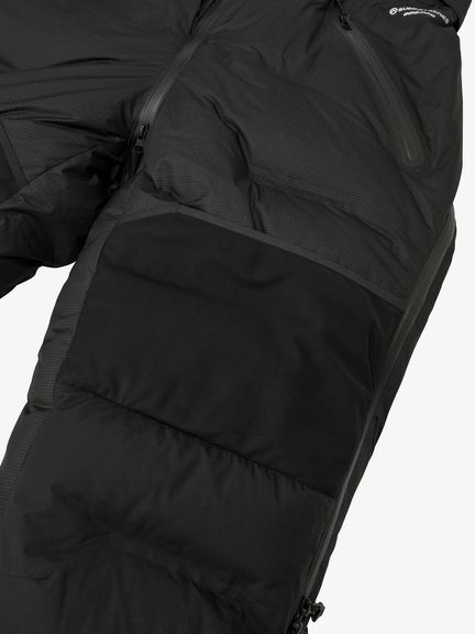 - <表地>7D×70D GORE-TEX WINDSTOPPER RipStop Insulated Shell(2層)(表側:ナイロン100%、裏側:ePE)<尻・膝下>GORE-TEX WINDSTOPPER Insulated Shell(2層)(表側:ナイロン100%、裏側:ePE)<中わた>WR CLEANDOWN 900 PRO(ダウン95%、フェザー5%)<裏地>PERTEX Quantum(ナイロン100%)