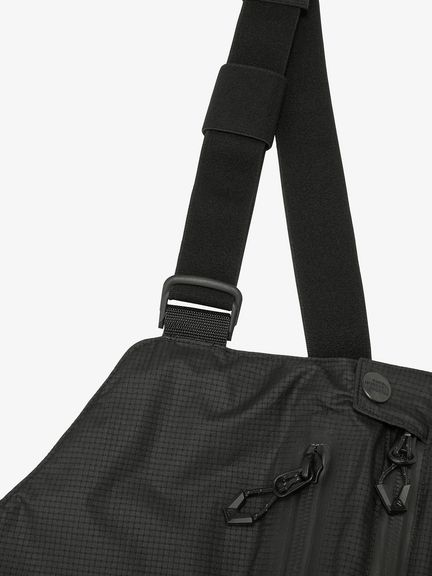 胸部のポケット、ウエストサイドのポケットには止水ファスナーを使用。また、左胸ポケット部には無線のコードを引き出せるホールを設置。外部からの濡れリスクを未然に防ぎながら、電子機器のバッテリーの消耗を軽減する施策を施しています。