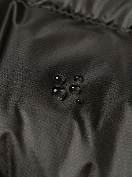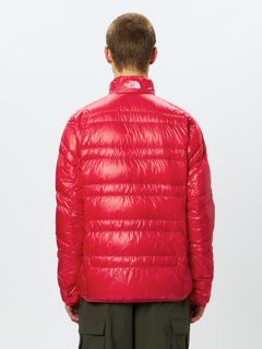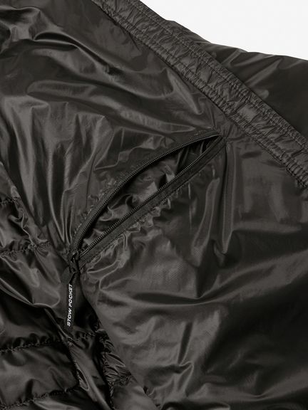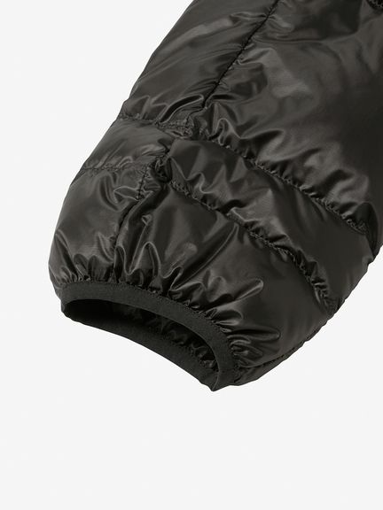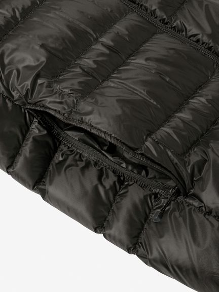 表地は軽量のナイロンダブルリップ素材。はっ水加工を施し、多少の雨や雪に対応します。中わたは、遠赤外線効果で自然なあたたかさをもたらす光電子ダウンを封入。抑えめのダウン量でも保温性を確保しています。ダウンが偏りにくいキルトデザインで、素材の特性を十分に生かします。裾と袖はシンプルなバインダー仕立て。ポケットに本体を収納できるポケッタブル仕様です。