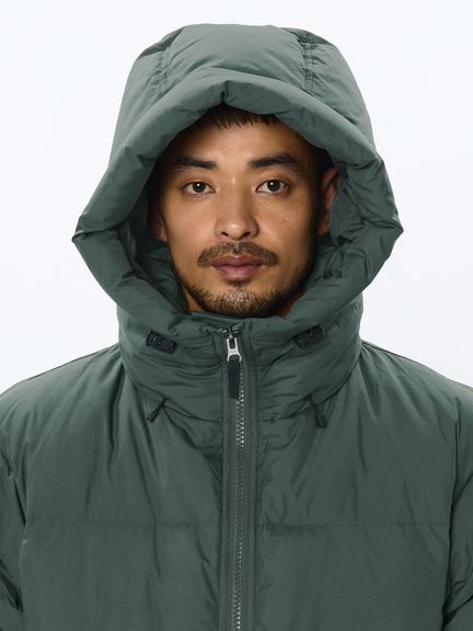 表地にははっ水加工を施した、軽くナチュラルな風合いのリサイクルタスランナイロンを使用。マットな質感の生地に、パッカリングを効かせてスポーティー感を抑え、都市生活に馴染むデザイン感です。中わたは、自然なあたたかさをもたらすクリーンダウン光電子を封入。裏地にGORE-TEX WINDSTOPPER 2層構造を使用し、風の侵入を軽減しています。裾に埋め込み式のコードロッカーを配置し、フィット感の調節が可能です。