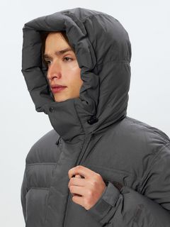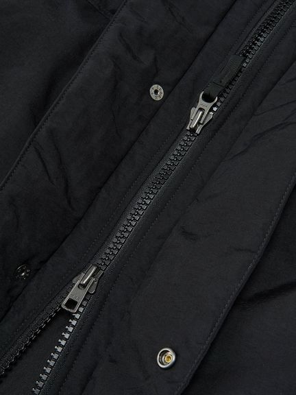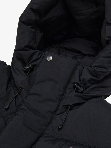 表地にははっ水加工を施した、軽くナチュラルな風合いのリサイクルタスランナイロンを使用。マットな質感の生地に、パッカリングを効かせてスポーティ感を抑え、都市生活に馴染むデザイン感です。中わたの一部にリサイクルダウンを使用し、バッフル感と軽さを追求。裏地にGORE-TEX WINDSTOPPER 2層構造を使用し、風の侵入を軽減しています。フロントはダブルフラップ仕様。ダウンをたっぷりと封入したフードは頭部をしっかり覆うことができる大きめの設計で、ドローコードで調節が可能です。
